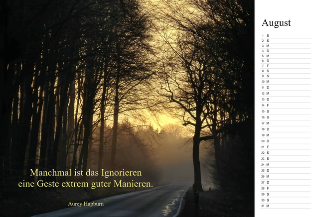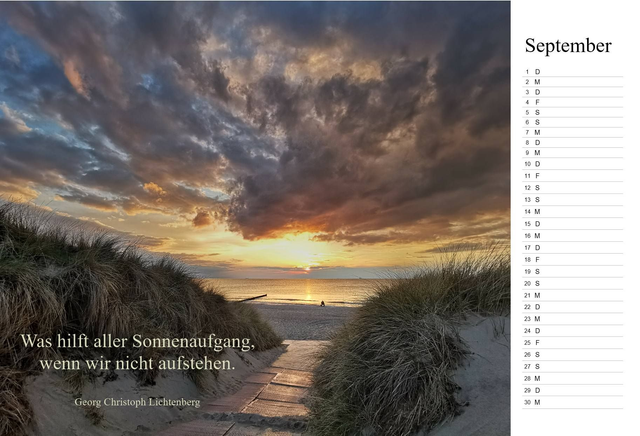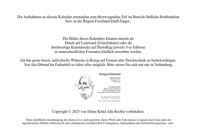 Foto-Monatskalender für das Jahr 2025 mit 13 Landschaftsfotografien von Dieter Kittel und Lebensweisheiten. Format A3, hochwertiger Farbdruck. Künstlerauflage von max. 50 Stück